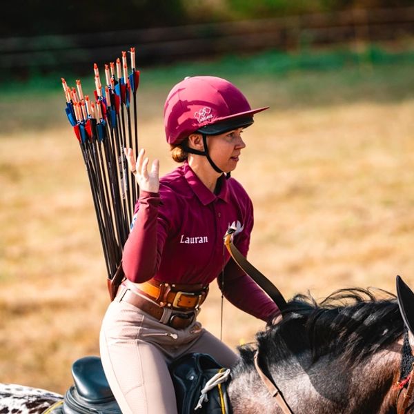 A little bit about me. My name is Lauran. I'm a British Horseback Archery Association Approved Coach and I've been doing Horseback Archery for five years now. I've been coaching for just over three years through Valkyrie Mounted Archery. I am fully insured, have safeguarding (Disclosure & PVG) and First Aid certified. I have also trained with Archery GB and Scottish Archery to gain experience in target archery.